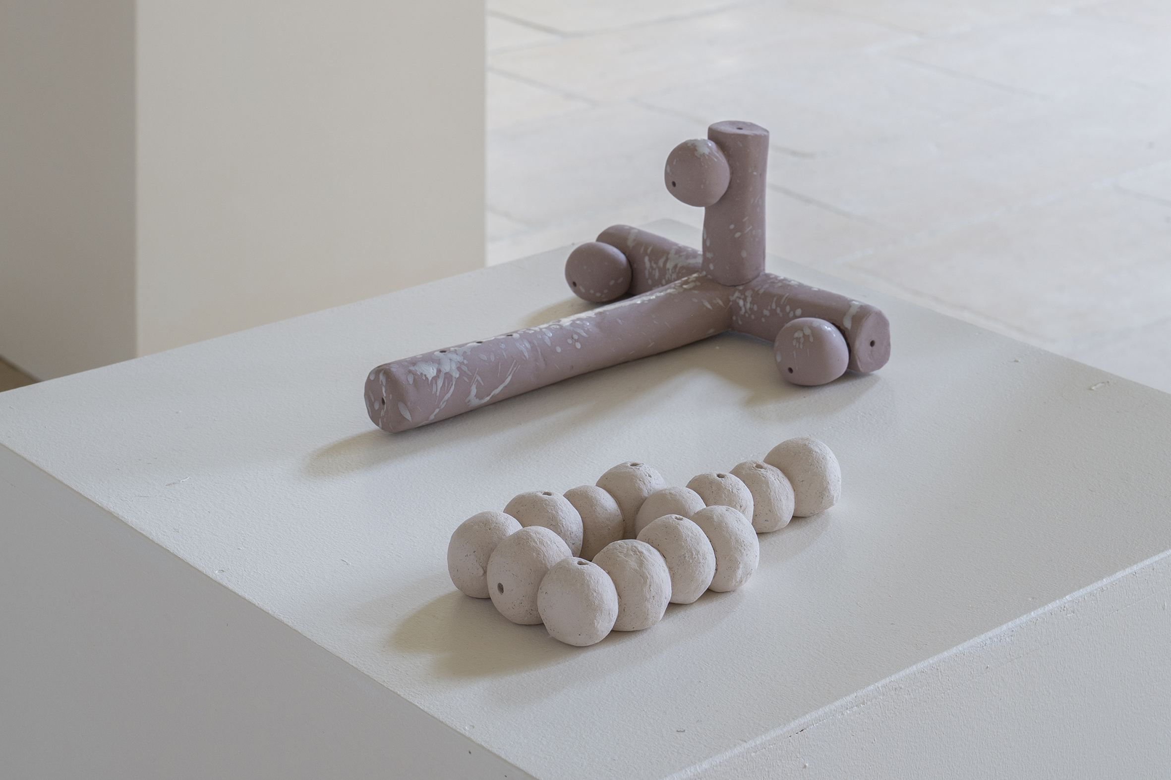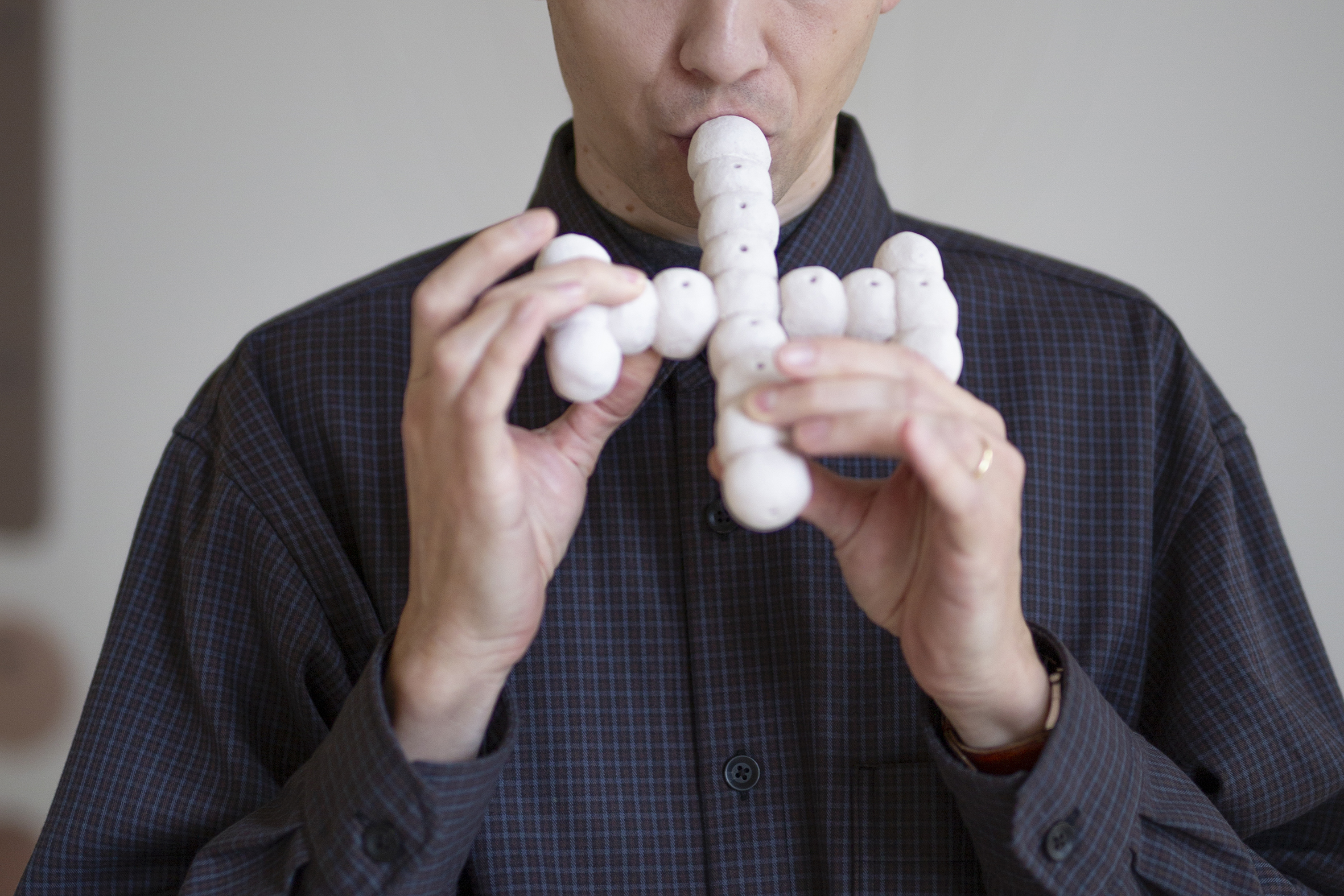 | 1 > 5 | «Flûtes aphones» — dimensions variables. Grès chamotté, sous-glaçure. 2024 | 6 > 8 | «Instruments d'airs» — dimensions variables. Grès chamotté, sous-glaçure 2023 ¶ | 1 > 5 | «Flûtes aphones» — variable dimensions. Chamotte stoneware, underglaze. 2024 | 6 > 8 | «Instruments d'airs» — variable dimensions. Chamotte stoneware, underglaze 2023 -