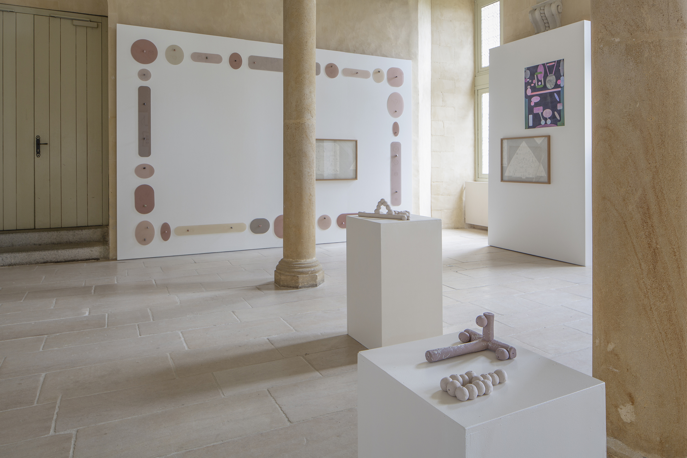 | 1 | «Un espace choisi» — 71 x 60 cm. Collage (gouache et pierre noire sur papier) | 2 | «Ensemble de gouttes» — 55 x 50 cm. Vue d’exposition au Muséum d'Histoire naturelle de Nantes. Collage (gouache et pierre noire sur papier) et cadre en aubier de châtaigner. | 3 | «Cairns et colombins» — dimensions variables. Grès émaillé et matériaux divers. | 4 | «L’idée d’une composition» — 101 x 66 cm. Collage (gouache et pierre noire sur papier). | 5 | «Cairns et colombins» — dimensions variables. Grès émaillé et matériaux divers. | 6 | «L’articulation (ou Le message)» — 99 x 61 cm. Vue d’exposition. Collage (gouache et pierre noire sur papier). Cadre en aubier de châtaigner. | 7 | Détail. 2021 ¶ | 1 | «Un espace choisi» — 71 x 60 cm. Collage (gouache and black stone pencil on paper) | 2 | «Ensemble de gouttes» — 55 x 50 cm. Exhibition view at the Nantes Natural History Museum. Collage (gouache and black stone pencil on paper) and chestnut sapwood frame. | 3 | «Cairns et colombins» — variable dimensions. Glazed stoneware and various materials. | 4 | «L’idée d’une composition» — 101 x 66 cm. Collage (gouache and black stone pencil on paper) | 5 | «Cairns et colombins» — variable dimensions. Glazed stoneware and various materials. | 6 | «L’articulation (ou Le message)» — 99 x 61 cm. Exhibition view. Collage (gouache and black stone pencil on paper) and chestnut sapwood frame. | 7 | Detail. 2021 -